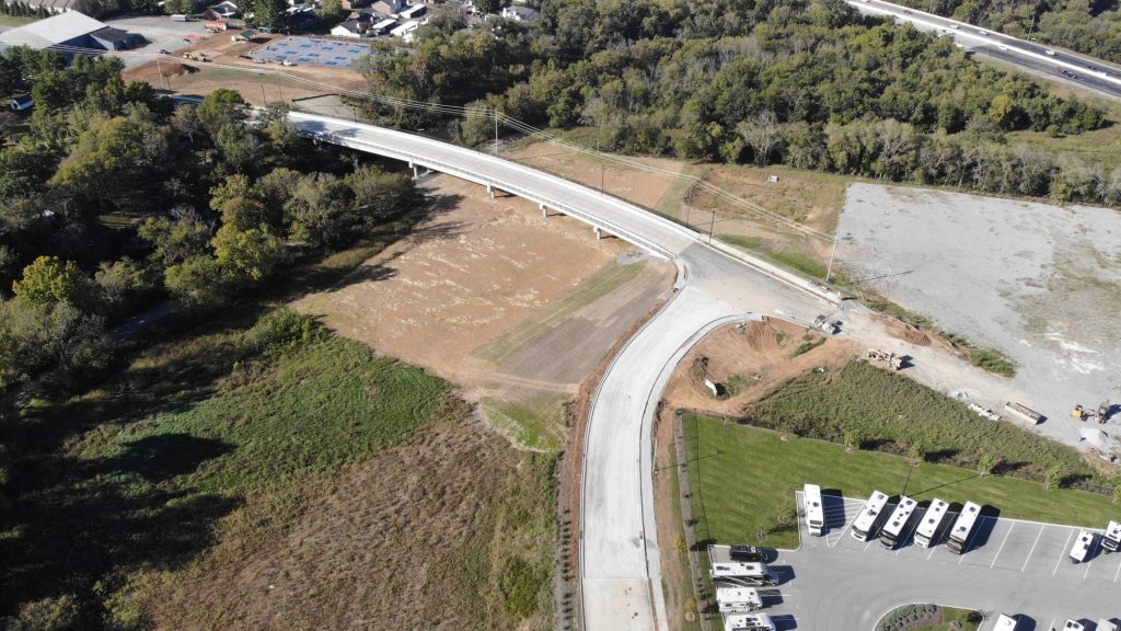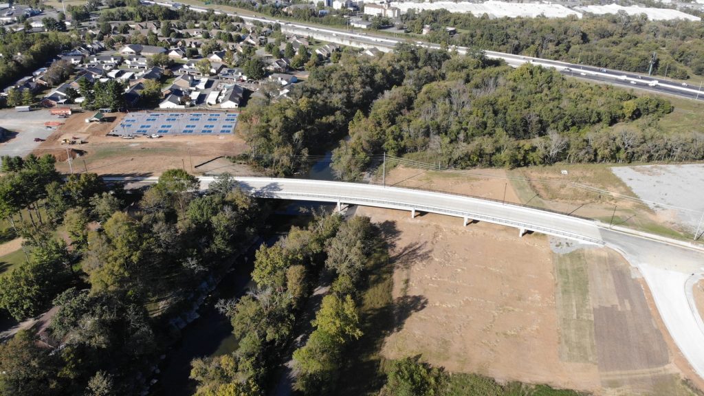 The project built a connector road of approximately 0.30 miles from the north end of Beasie Road extending west over to River Rock Blvd. The extension incorporates a three-lane bridge over the West Fork of the Stones River including curb and gutter, sidewalk on one side and multi-use path on the other. Completed in 2024, the Beasie Road and River Rock Boulevard Connector spans 600 feet over the West Fork Stones River in Murfreesboro. The project team completed the grading, storm, utilities, asphalt paving, and curb and gutter.
